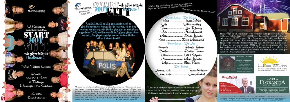 Uf Kamraternas Teaterklubb presenterade "Svart mot Vitt, och glöm inte de #turkosa!" söndagen 7.12.2014 kl. 16.00 på Träskberga. Se bilder!